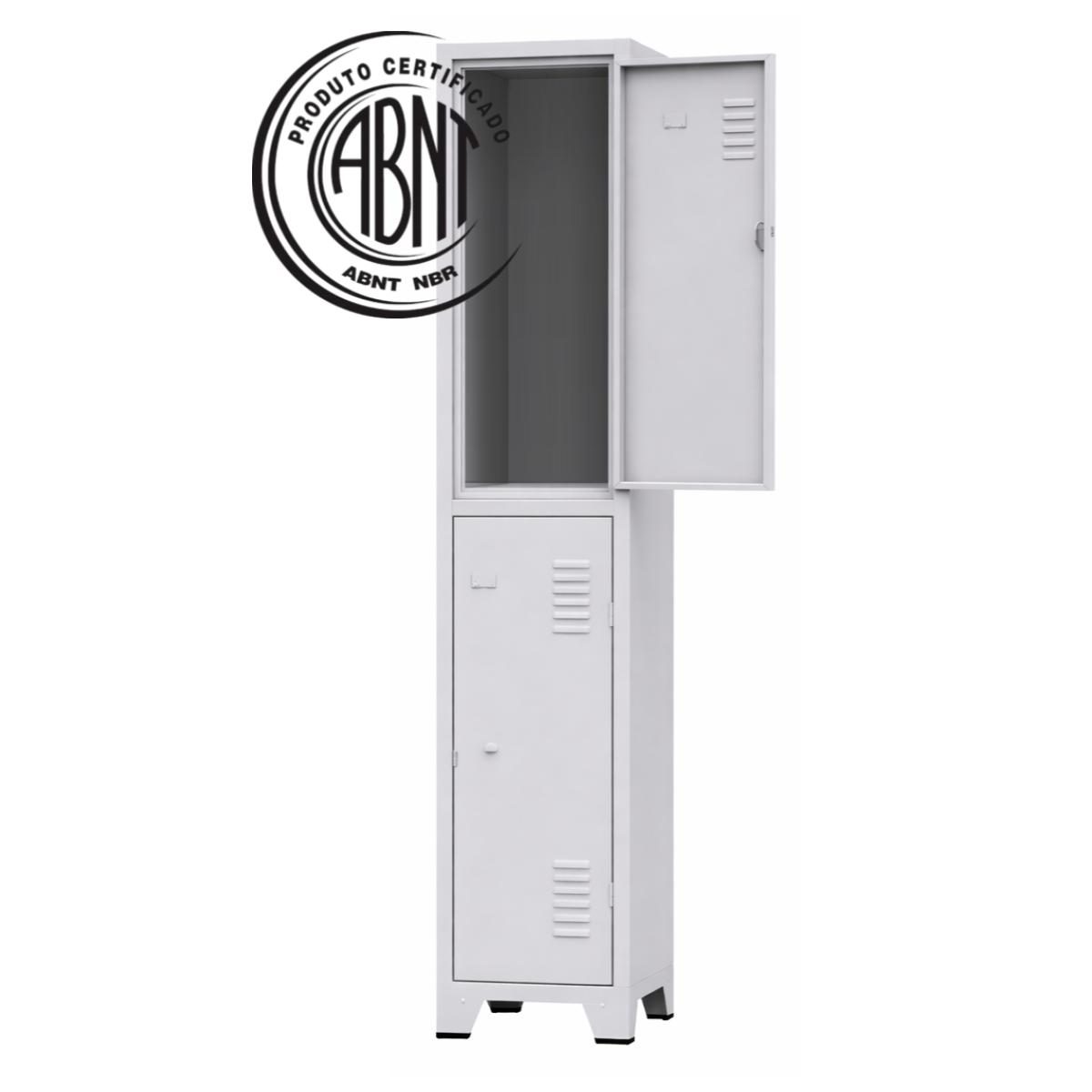 Cada compartimento oferece espaço adequado para armazenamento de objetos pessoais como mochilas, bolsas, roupas, EPI’s ou materiais de uso diário. O modelo conta com compartimento superior com maior altura útil, facilitando o uso em ambientes profissionais e industriais.