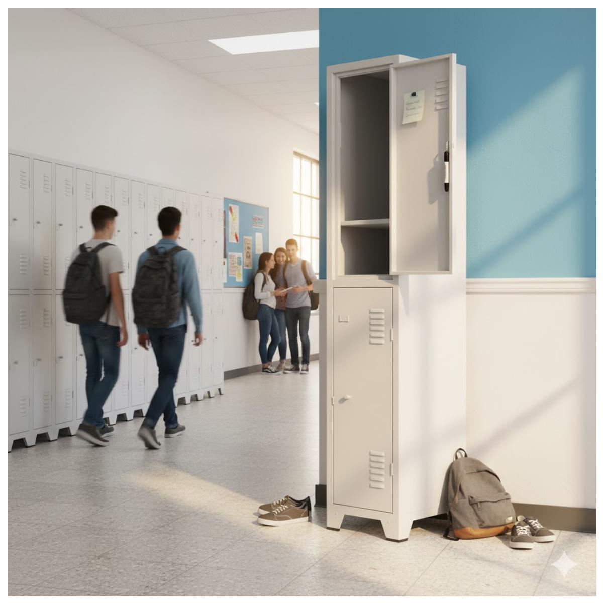 Cada compartimento oferece espaço adequado para armazenamento de objetos pessoais como mochilas, bolsas, roupas, EPI’s ou materiais de uso diário. O modelo conta com compartimento superior com maior altura útil, facilitando o uso em ambientes profissionais e industriais.