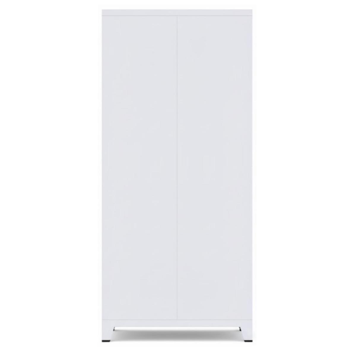 O roupeiro metálico oferece maior resistência, durabilidade, higiene e segurança, além de ser menos suscetível à umidade quando comparado ao MDF.