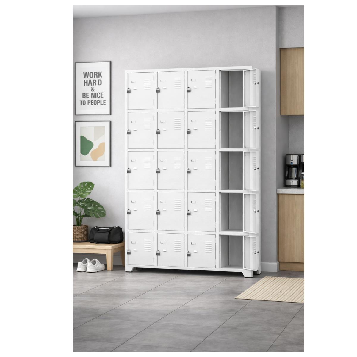 ? Para que serve o roupeiro metálico de 20 portas?