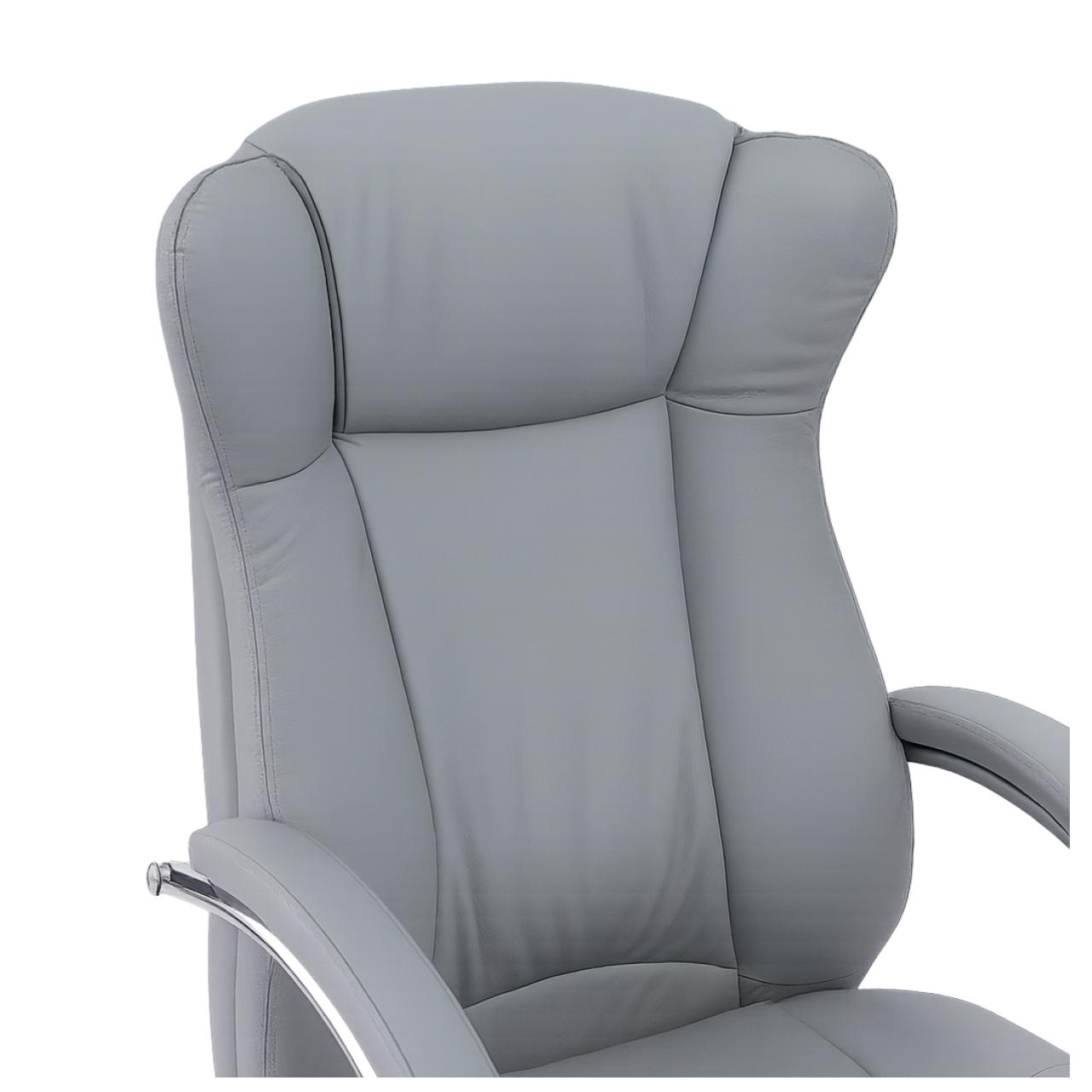 Cadeira Presidente em Couro Sintético Cinza – Base Cromada