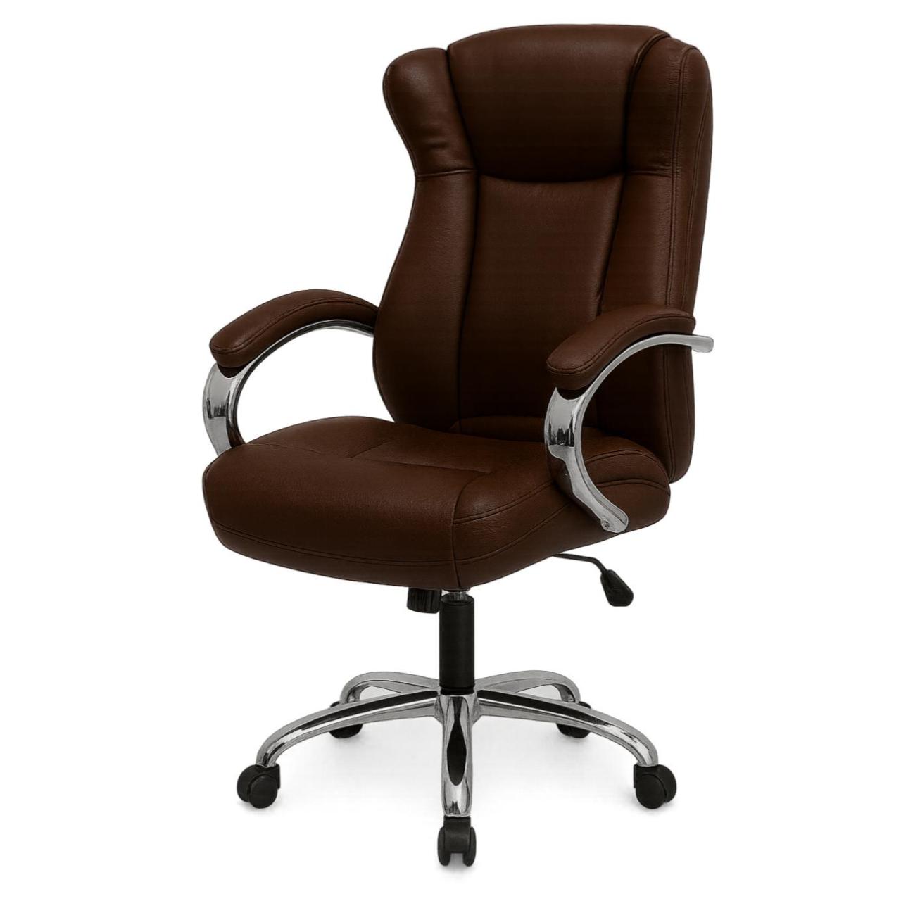 Cadeira Presidente em Couro Sintético Marrom Café – Base Cromada