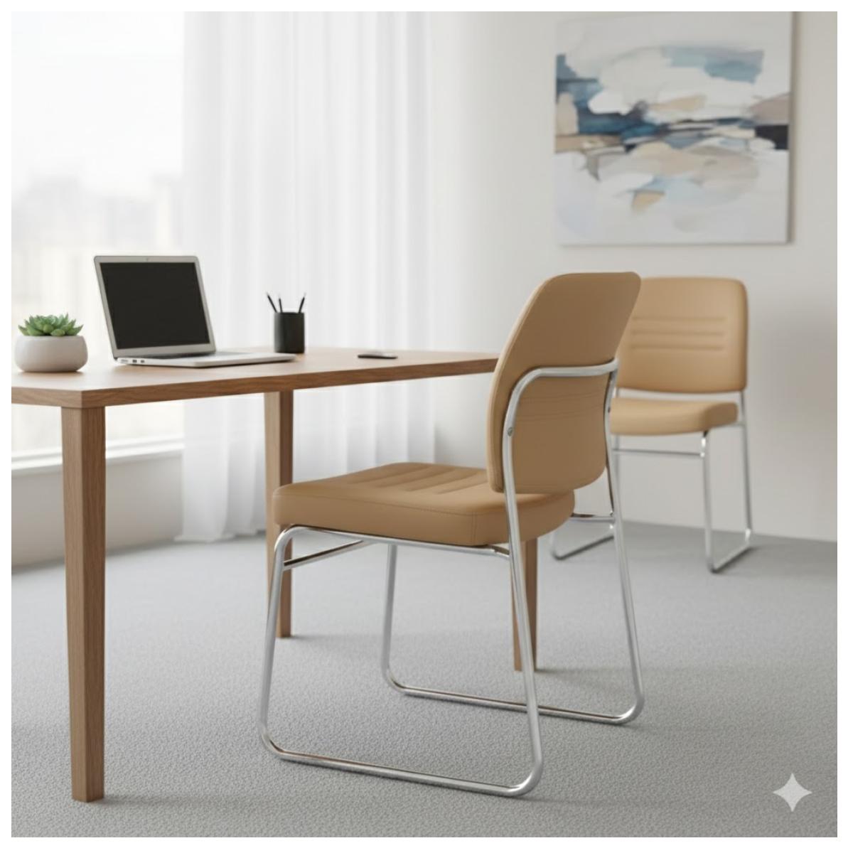 A cadeira estofada para escritório e salas de reunião combina design contemporâneoconforto e robustez estrutural, sendo ideal para ambientes corporativos, salas de reunião, salas de espera, coworkings e áreas administrativas. Seu visual clean com base metálica tipo ski proporciona leveza estética e excelente estabilidade.