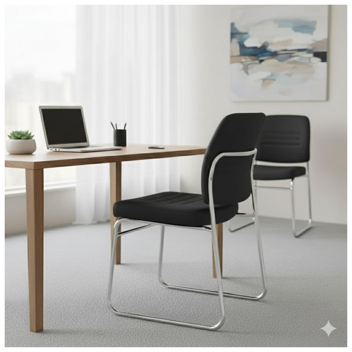 A cadeira estofada para escritório e salas de reunião combina design contemporâneo, conforto e robustez estrutural, sendo ideal para ambientes corporativos, salas de reunião, salas de espera, coworkings e áreas administrativas. Seu visual clean com base metálica tipo ski proporciona leveza estética e excelente estabilidade.