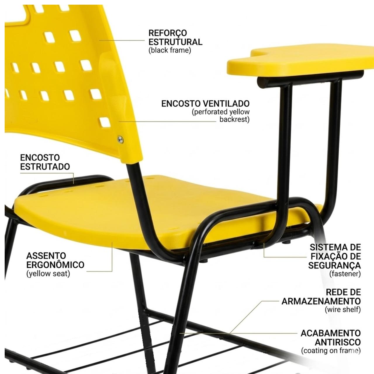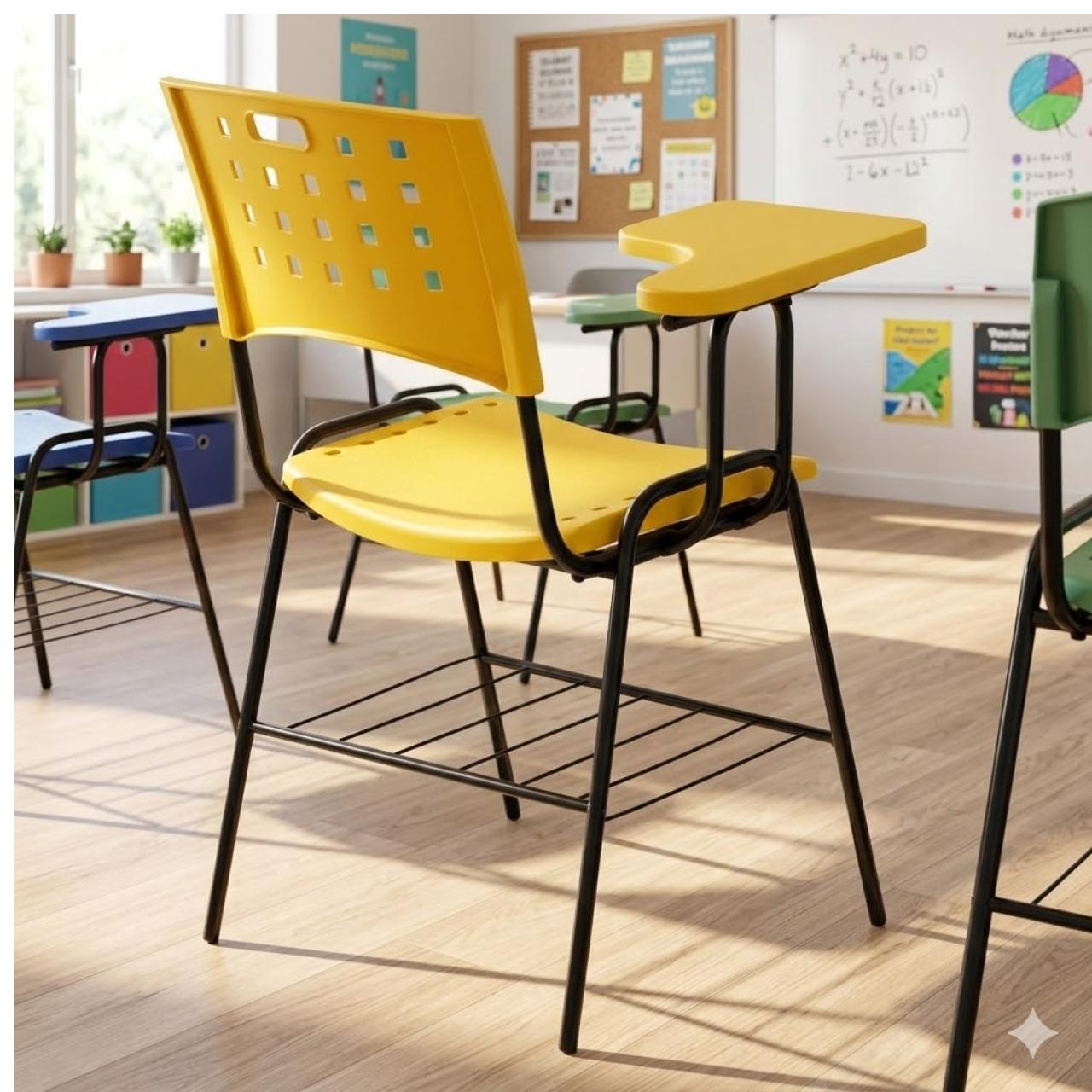 Cadeira universitária com prancheta lateral fixa, desenvolvida para ambientes educacionais, treinamentos, cursos profissionalizantes, igrejas e auditórios. Combina resistência estrutural, ergonomia e praticidade, oferecendo conforto e funcionalidade no uso diário.