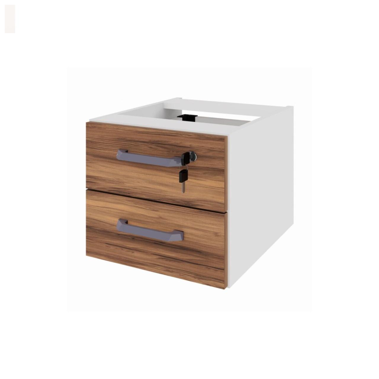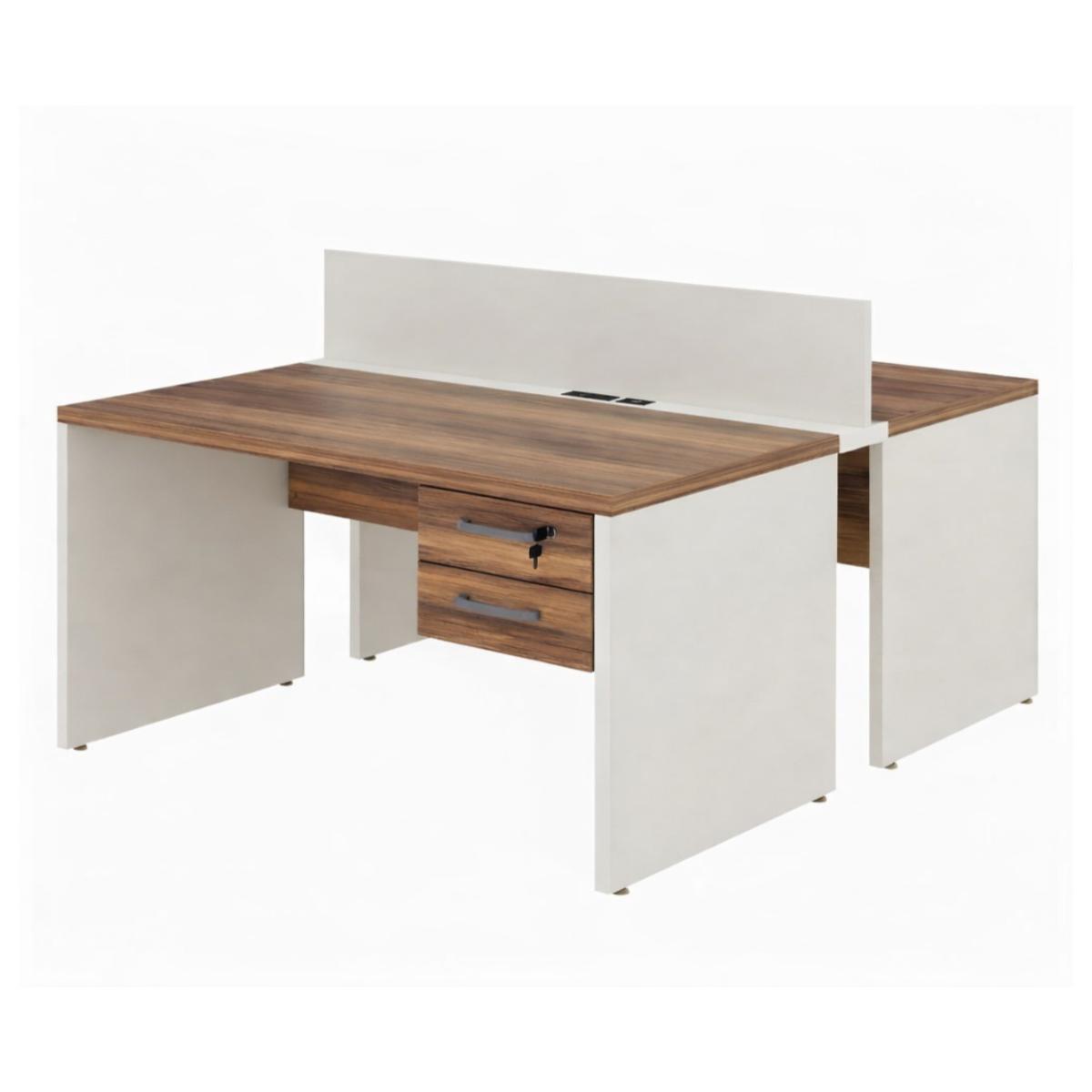 Estação de Trabalho Dupla com Divisória e Gavetas – Nogal Sevilha c/ Champanhe