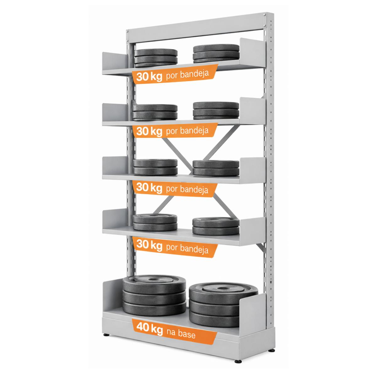 Cada nível suporta, em média, de 30kg a 40kg, desde que o peso esteja bem distribuído. Isso é ideal para acervos densos, livros jurídicos e enciclopédias.