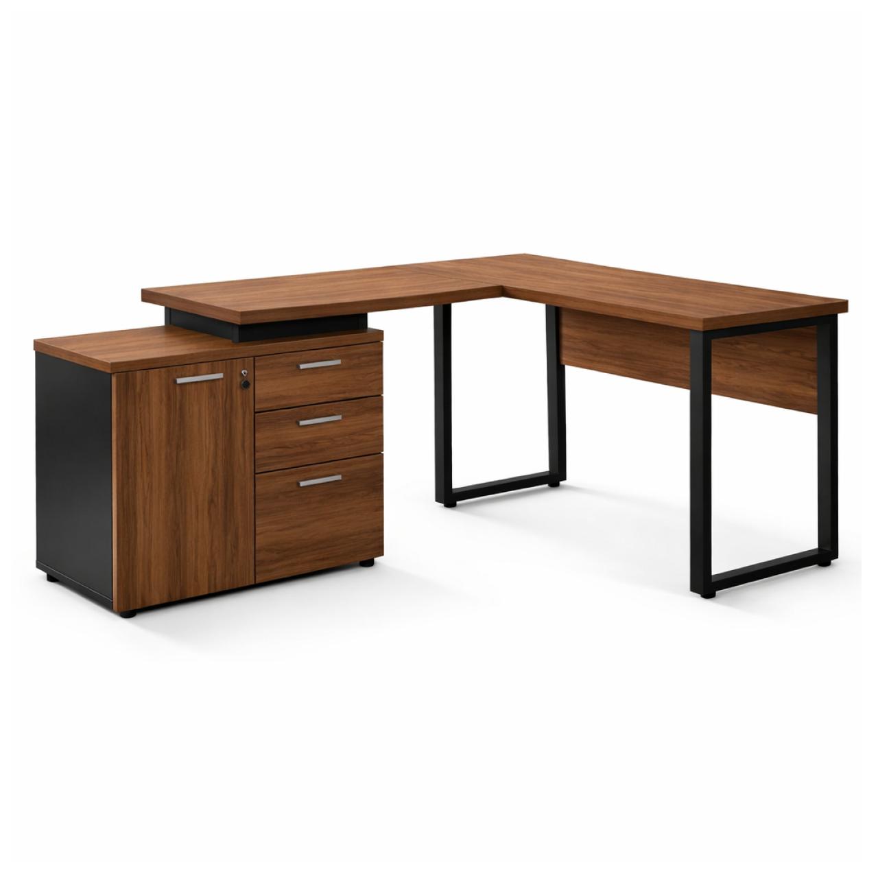 A mesa de escritório em L com armário e gavetas é a solução ideal para quem busca organização, produtividade e design moderno no ambiente de trabalho. Projetada para escritórios profissionais, home office e ambientes corporativos, ela oferece amplo espaço de trabalho aliado a um sistema completo de armazenamento.
