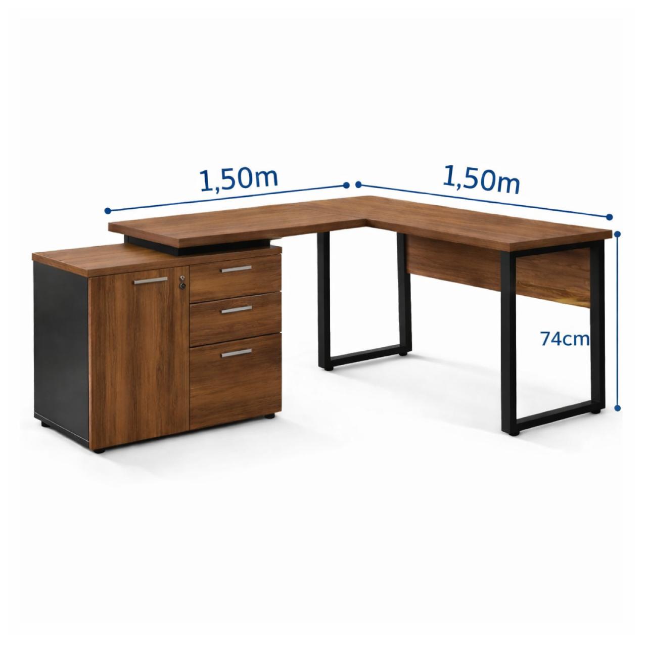 Mesa de Escritório em L com Armário e Gavetas – Estrutura Metálica Reforçada