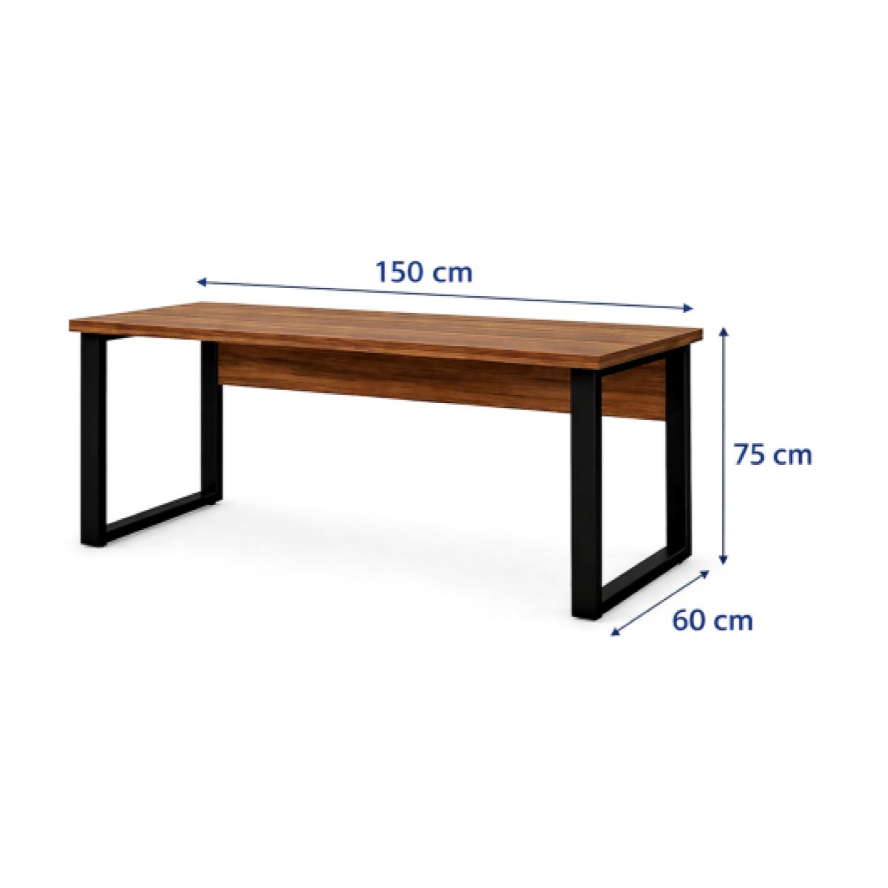 A estrutura metálica reforçada garante alta resistência, estabilidade e longa durabilidade, enquanto o tampo em padrão amadeirado proporciona um visual elegante e profissional.