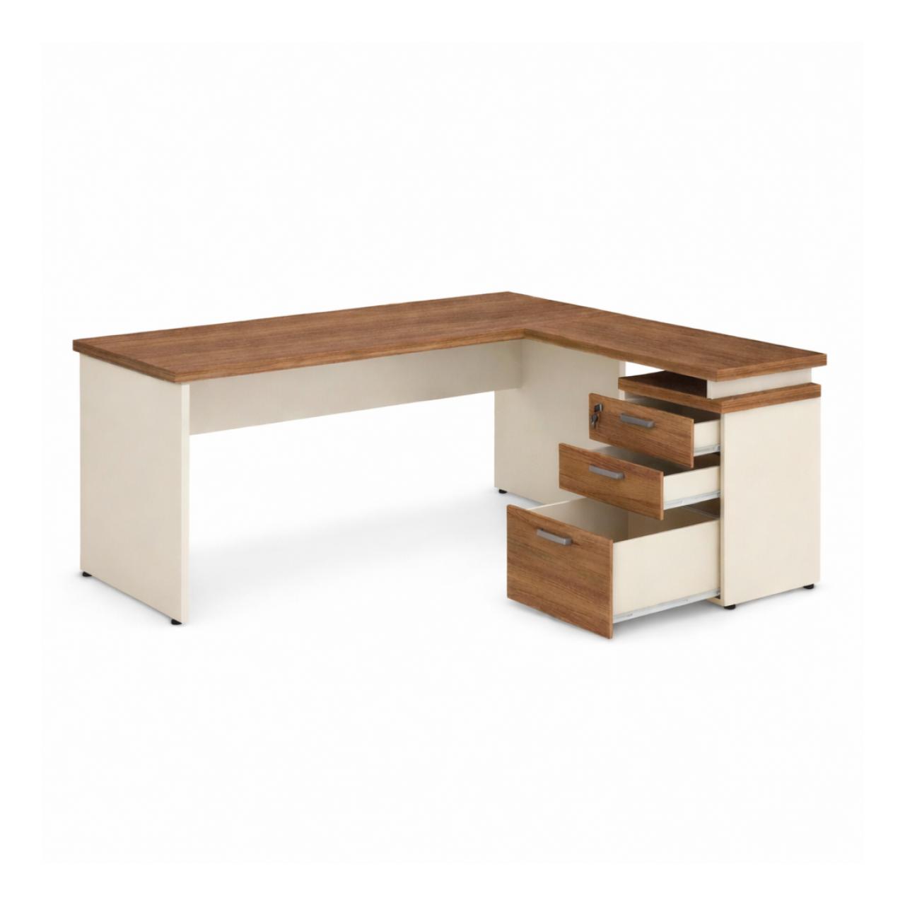 Mesa Diretor em L com Gaveteiro Integrado – Linha Premium
