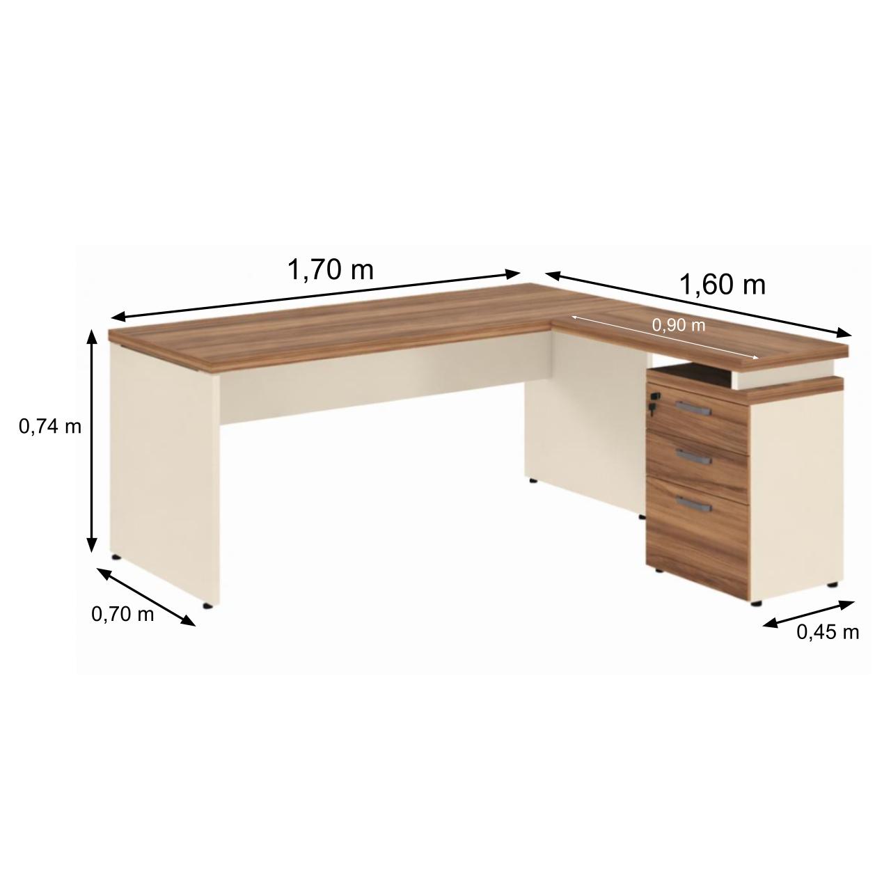 Seu formato ergonômico em “L” proporciona uma transição suave entre a área de computador e a área de atendimento ou escrita, mantendo tudo ao alcance das mãos. O gaveteiro integrado de 3 gavetas com fechadura garante a segurança de documentos e itens pessoais, mantendo o tampo sempre livre e organizado.