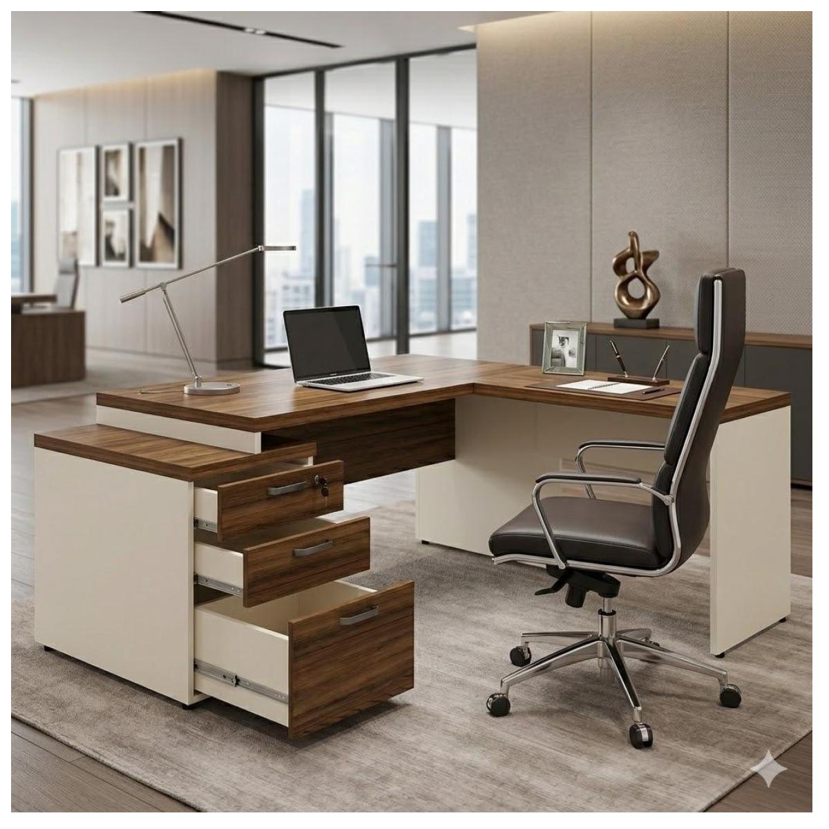 A Mesa de Escritório em L Diretor Prime é a solução definitiva para profissionais que buscam o equilíbrio perfeito entre design moderno, robustez e funcionalidade. Desenvolvida para ser o ponto central de escritórios corporativos e ambientes de Home Office de alto padrão, esta escrivaninha oferece uma ampla área de trabalho, permitindo a organização eficiente de computadores, monitores e documentos.