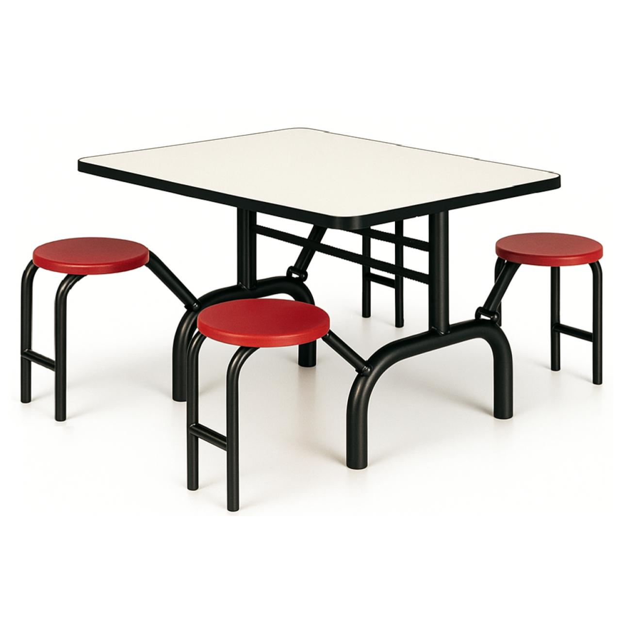 Mesa coletiva de refeitório com bancos Escamoteáveis integrados, ideal para uso em ambientes institucionais, industriais, escolares e corporativos. Estrutura metálica reforçada e assentos individuais acoplados garantem durabilidade, praticidade e organização do espaço.