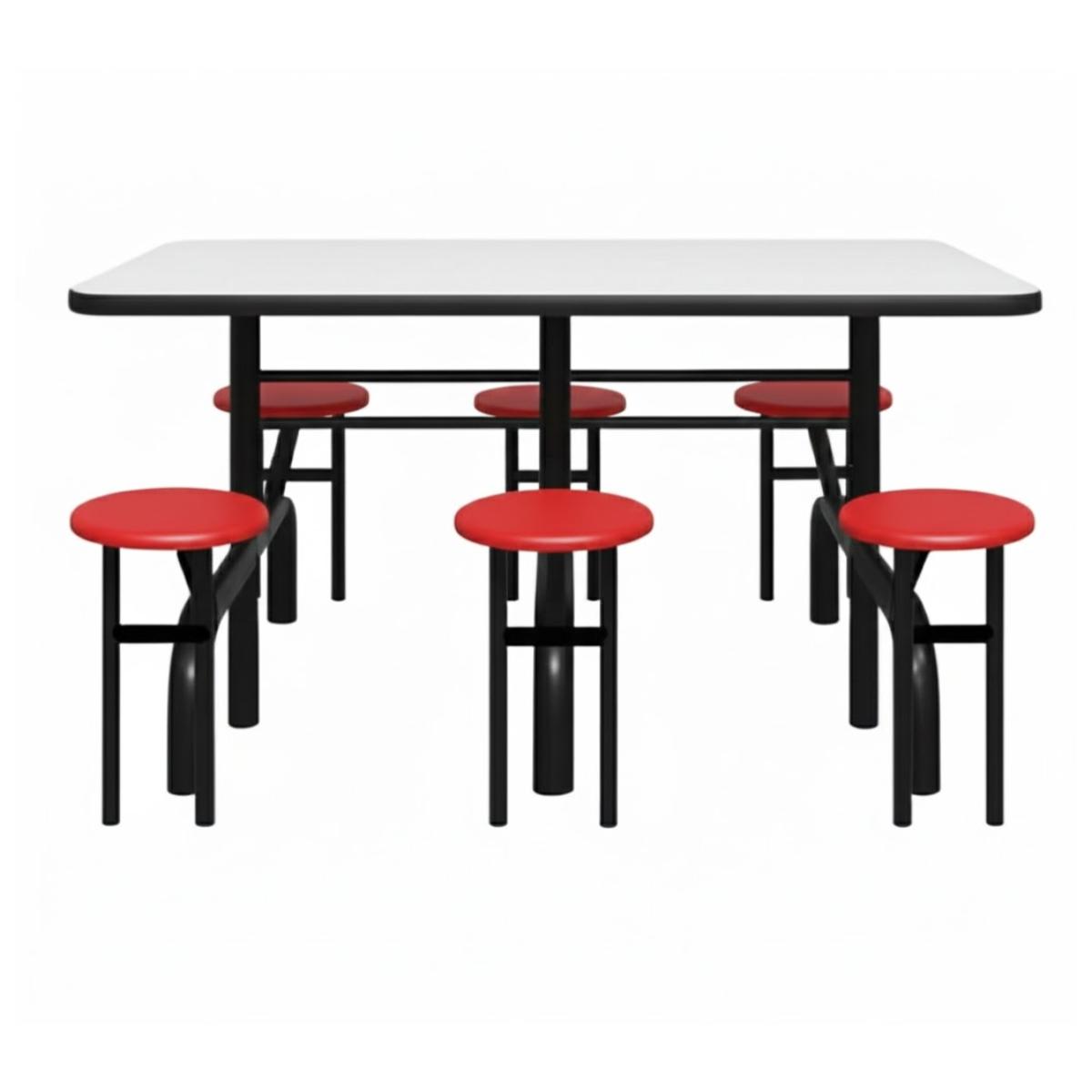 Mesa coletiva de refeitório com bancos Escamoteáveis integrados, ideal para uso em ambientes institucionais, industriais, escolares e corporativos. Estrutura metálica reforçada e assentos individuais acoplados garantem durabilidade, praticidade e organização do espaço.
