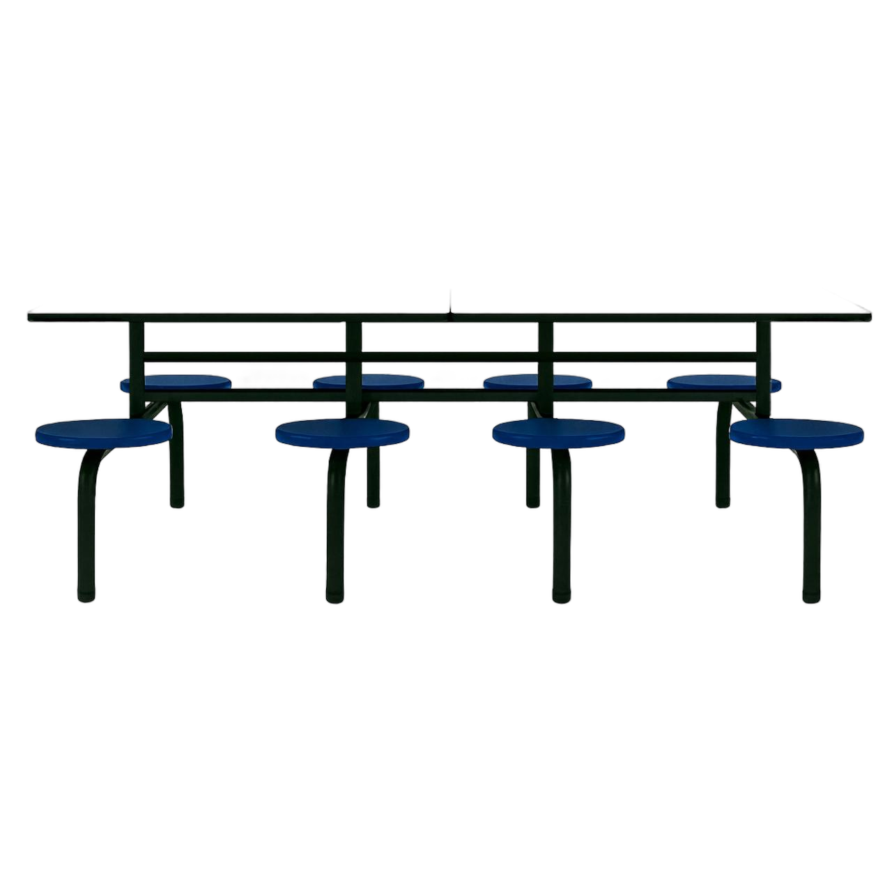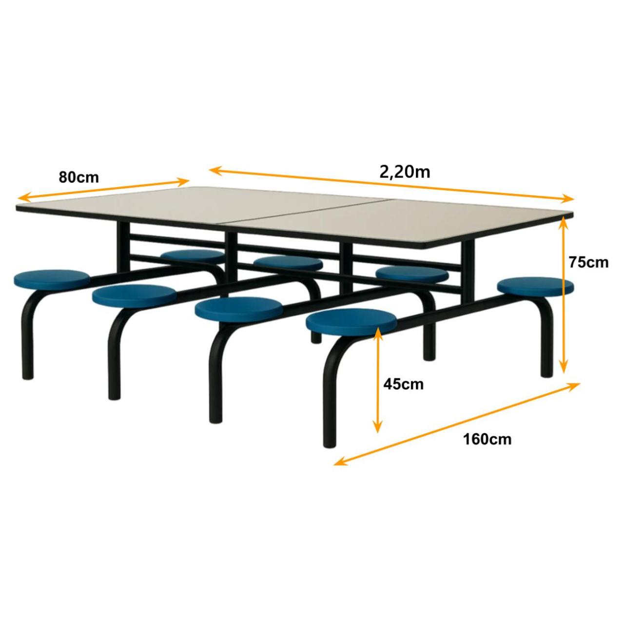 Mesa coletiva de refeitório com bancos fixos integrados, ideal para uso em ambientes institucionais, industriais, escolares e corporativos. Estrutura metálica reforçada e assentos individuais acoplados garantem durabilidade, praticidade e organização do espaço.