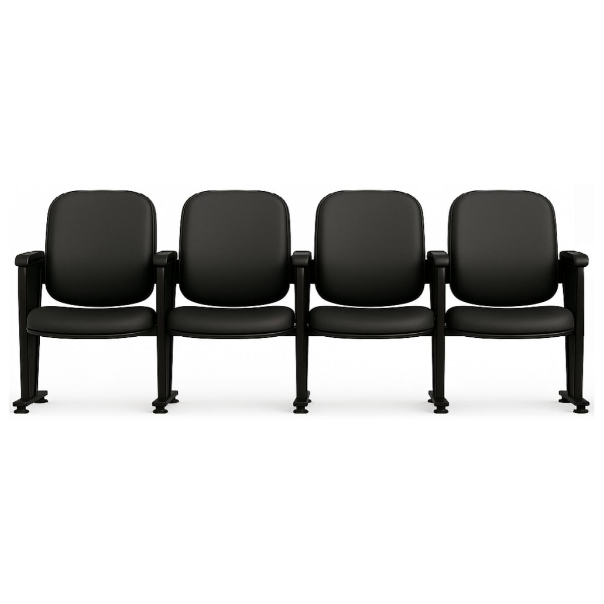 Poltrona Auditório Rebatível 04 Lugares – Linha Premium – Corino Preto – 38104
