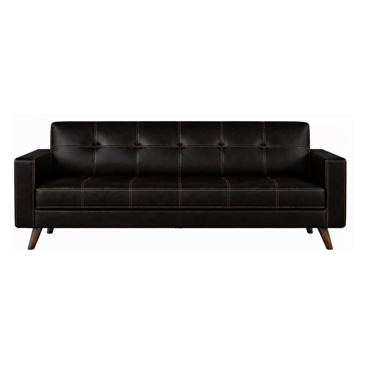 O Sofá de Escritório 03 lugares Roma na cor Café é uma peça que une o design retrô com uma estrutura robusta, ideal para compor ambientes de recepção, escritórios ou salas de estar que buscam um toque de elegância clássica.